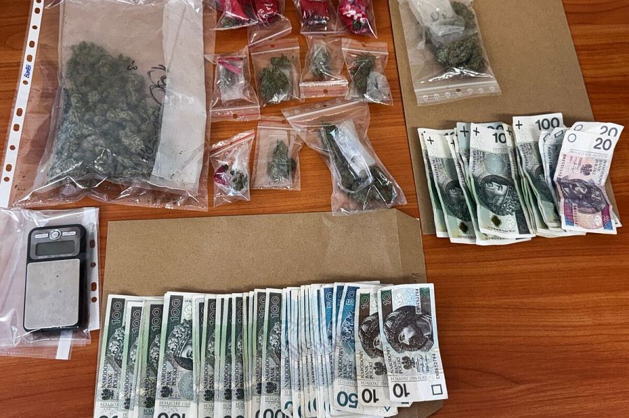 Podczas interwencji policjanci zabezpieczyli również wagę jubilerską oraz ponad 5 tysięcy złotych w gotówce.
