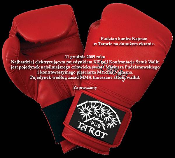 Podczas XII gali Konfrontacji Sztuk Walki w potyczce MMA (mieszane sztuki walki), co można nazwać wolną amerykanką, bo dozwolone są wszelkie techniki, zmierzą się dwaj debiutanci, a ich potyczki będziecie mogli obserwować w dobrej atmosferze przy Waszym ulubionym drinku. Zapraszamy!