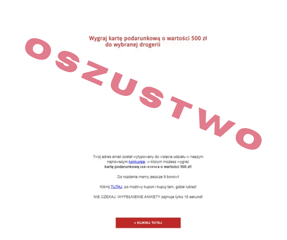Przykładem może być otrzymana wiadomość nadesłana na nasz adres e-mail. Mimo, że jej treść brzmi obiecująco, to jest to jedynie próba wyłudzenia danych. Poniżej pokażemy jak wyglądała ta wiadomość, mamy nadzieję, że to ustrzeże wszystkich przed takimi działaniami:
