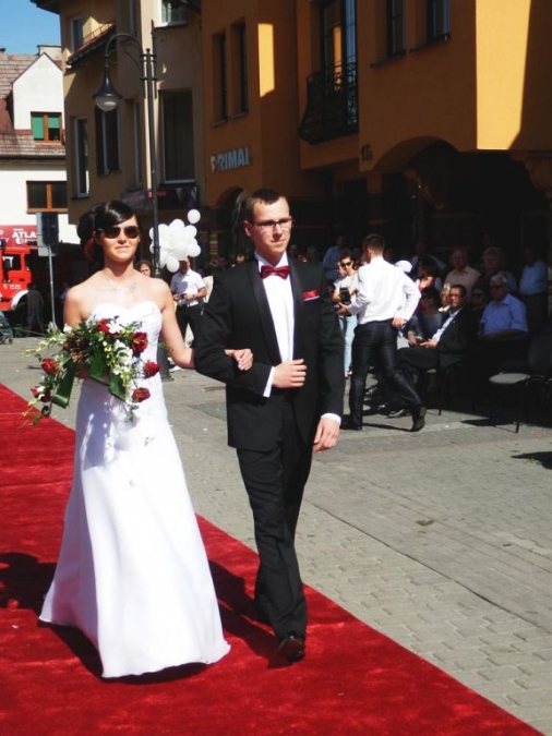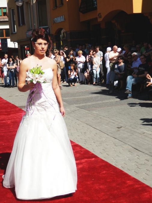 Niedzielne wczesne popołudnie, wiosna w pełnej krasie, ulica Moniuszki przed siedzibą Cechu Rzemiosł Różnych i piękne panny młode - to był pierwszy taki pokaz w Żorach. Moda z ulicy Moniuszki - Zobacz zdjęcia – jest na co popatrzeć. Autorka: E.Bielecka