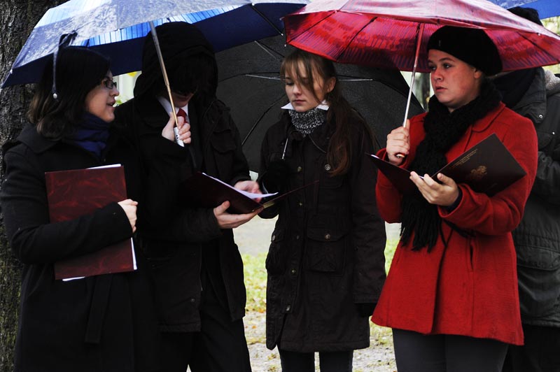 Uroczystość odsłonięcia pomnika Wojciecha Korfantego wpisana została w program obchodów Święta Niepodległości. Mimo deszczu i przenikliwego chłodu, na skwer za blokiem nr 4 na os. Korfantego przyszli też mieszkańcy dzielnicy. Wielu z nich, to co działo się na dole obserwowało z balkonów swoich mieszkań.
