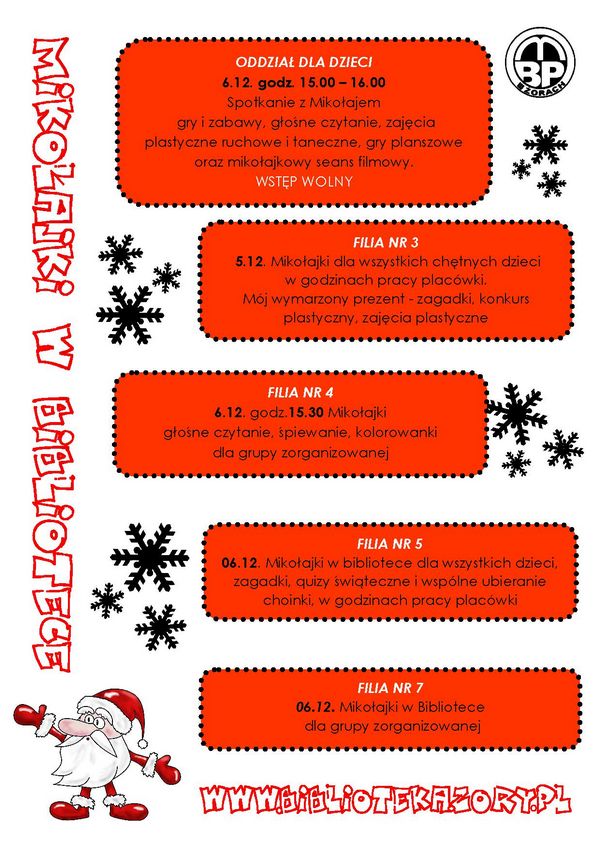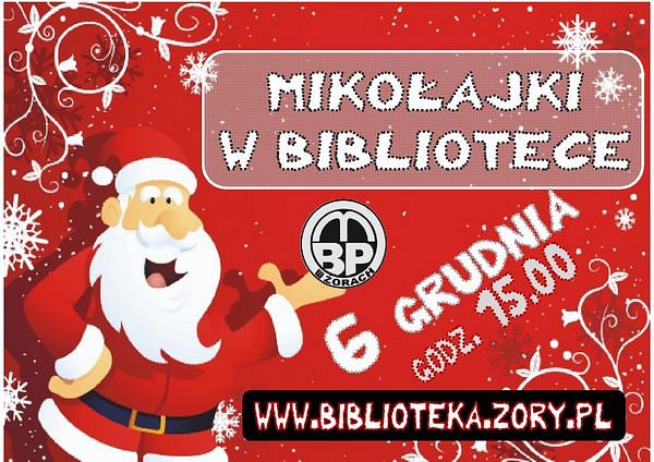 6 grudnia o godz.15.00 w progi Miejskiej Biblioteki Publicznej zawita gość z Laponii, Święty Mikołaj. Biblioteka serdecznie zaprasza wszystkie dzieci.