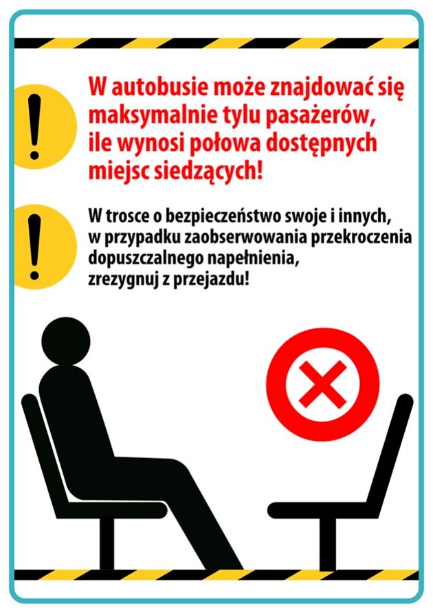 Pasażerowie mogą się również spotkać z sytuacją, w której co drugi fotel w autobusie będzie zaklejony taśmą ostrzegawczą.