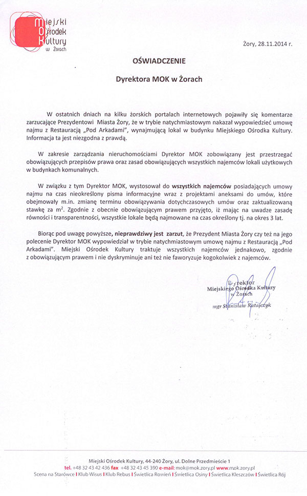 Oświadczenie Dyrektora Miejskiego Ośrodka Kultury: