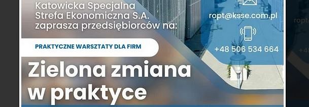 W imieniu Katowickiej Specjalnej Strefy Ekonomicznej S.A. zapraszamy do Akceleratora Biznesowego KSSENON w Żorach, gdzie w czwartek 23 października odbędzie się spotkanie pod hasłem "ZIELONA ZMIANA W PRAKTYCE - zrównoważony rozwój w działalności firmy".