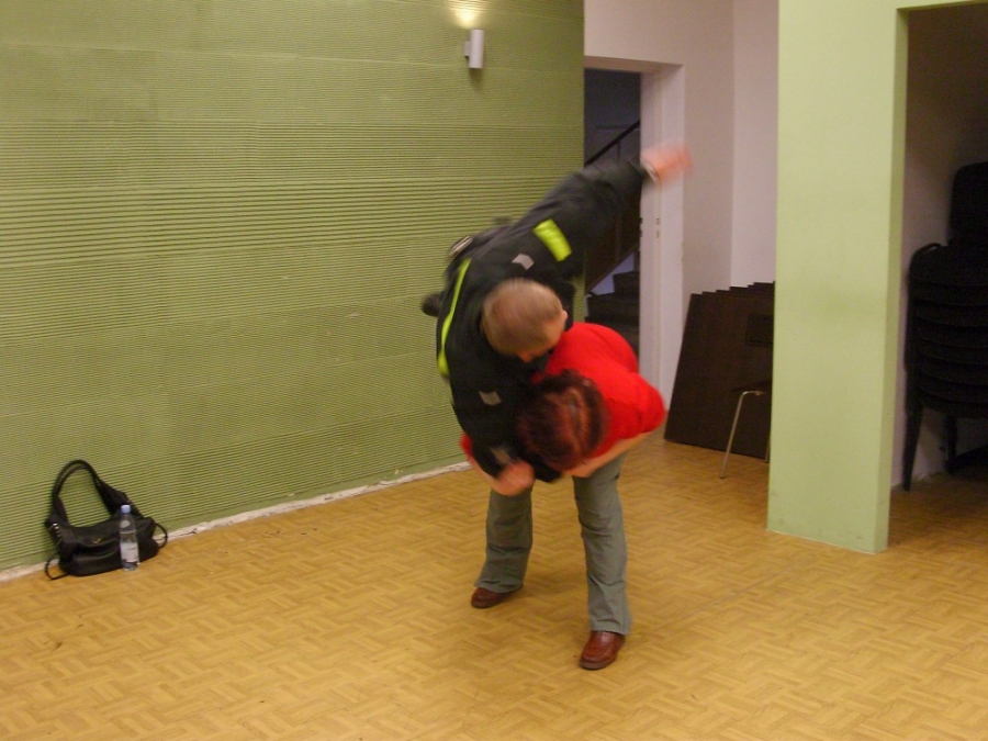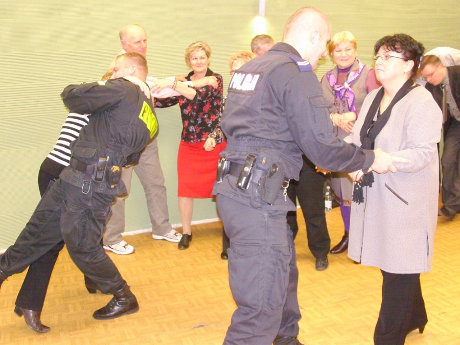 A wszystko działo się w siedzibie Żorskiego Centrum Organizacji Pozarządowych na os. Sikorskiego, podczas konferencji w ramach społecznej kampanii „Nie reagujesz – akceptujesz”, zorganizowanej przez żorską komendę policji we współpracy ze Stowarzyszeniem „Bezpieczne Miasto” i Uniwersytetem Trzeciego Wieku. Najbardziej uczestnikom konferencji przypadła do gustu właśnie ostatnia część spotkania. Podczas swobodnego panelu dyskusyjnego, ratownicy z Wojewódzkiego Pogotowia Ratunkowego przeprowadzili warsztaty z udzielania pierwszej pomocy na fantomie, a żorscy policjanci – zajęcia z samoobrony. - Gdy zaatakuje was napastnik, macie się bronić. Nie przejmujcie się, że zrobicie mu krzywdę. Najważniejsze jest wasze bezpieczeństwo – instruowali doświadczeni stróże prawa. Zaprezentowali techniki samoobrony, a na efekty nie trzeba było czekać. Szczególnie panie nie dały się długo prosić i bez wahania spróbowały swych sił – a policjanci byli do ich pełnej dyspozycji.