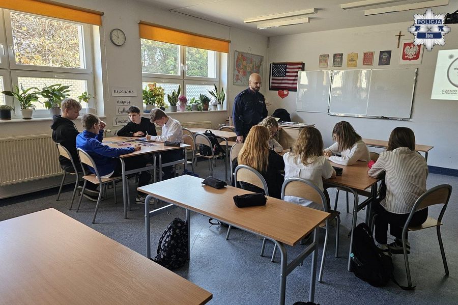 Uczniowie Szkoły Podstawowej nr 11 wzięli dziś udział w wyjątkowych zajęciach prowadzonych przez policjanta. Starsze klasy uczestniczyły w grze edukacyjnej o tolerancji, a młodsi uczniowie rozmawiali o tym, jak budować dzieciństwo bez przemocy.