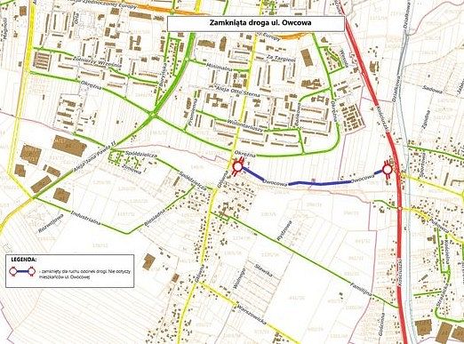 Na czas prowadzenia prac nie wyznaczono objazdu. Mieszkańcy ul. Owocowej będą mieć zapewniony dojad do swoich nieruchomości. Utrudnienia w ruchu potrwają do 18 sierpnia br. info: UM