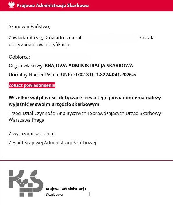 Oszuści podszywający się pod Krajową Administrację Skarbową (KAS) i urzędy skarbowe wysyłają fałszywe maile z wezwaniami i powiadomieniami.
