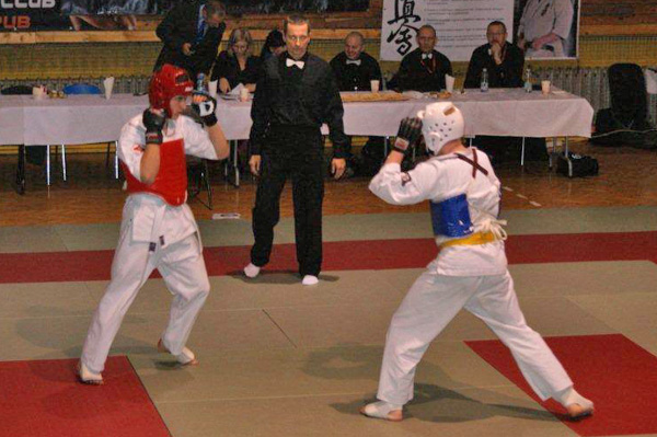 Po porannych eliminacjach, które wszyscy żorscy zawodnicy przeszli pomyślnie, żorscy zawodnicy zaczęli walczyć o miejsca medalowe. Jako pierwszy z żorzan stanął na podium młody Dominik Chabrzyk, który zajął 2 miejsce w kategorii kata dzieci do lat 9. Nie był to jedyny medal tego zawodnika, gdyż wkrótce okazało się, że w kategorii kumite lekki kontakt dzieci zdobył on brązowy medal, ex aequo ze swym klubowym kolegą Szymonem Aleksandrowiczem. W tej samej kategorii spory sukces odniósł Mateusz Szulik, który zajął drugie miejsce, ulegając przeciwnikowi jedynie w walce finałowej. Po dzieciach swe walki finałowe rozpoczęli kadeci i juniorzy. W tej ostatniej kategorii brązowy medal wywalczył Wojciech Salamon, natomiast wśród kadetek najlepsza była Monika Kobryń, która pewnie wywalczyła złoto, nie przejmując się tym, że w finale musiała się zmierzyć z zawodniczką mającą znacznie wyższy stopień. Także złoto wywalczył w kategorii seniorów Bartosz Cębrzyna, aktualny akademicki wicemistrz Polski.