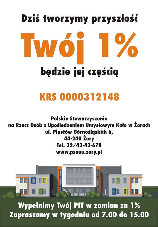 Pomóż. Przekaż swój 1% podatku Polskiemu Stowarzyszeniu na rzecz Osób z Upośledzeniem Umysłowym Koło w Żorach.