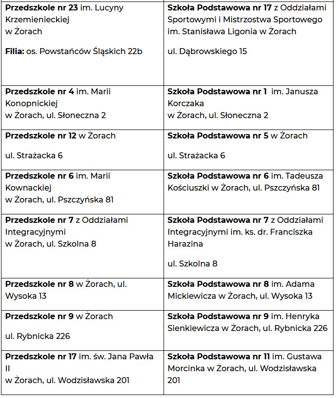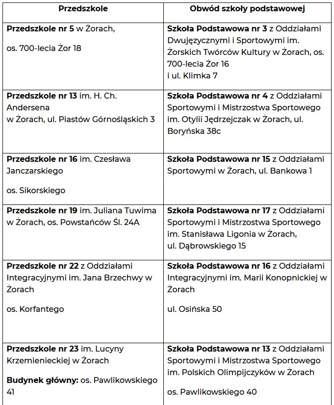 Rekrutacja do przedszkoli skierowana jest do dzieci mieszkających na terenie Miasta Żory.