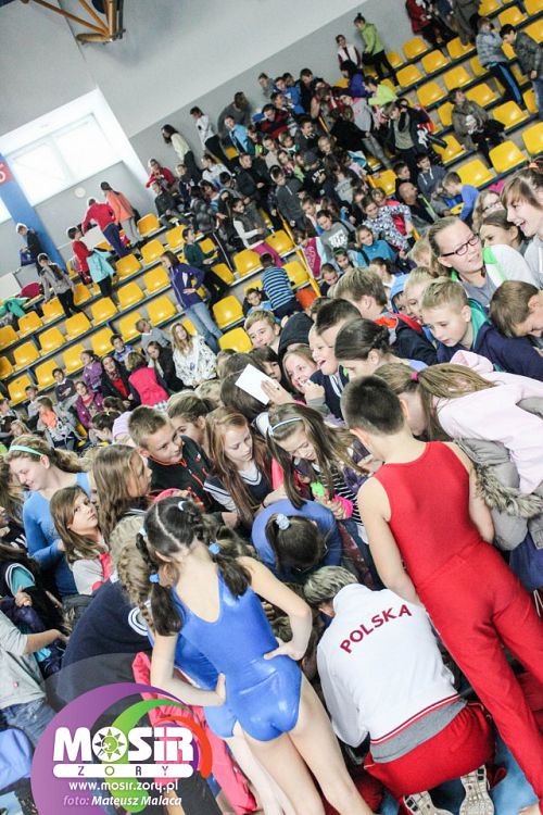 Prawie 250 uczniów z siedmiu żorskich szkół podstawowych wzięło udział w pierwszych - z cyklu zajęć, pn. "WF z gwiazdą sportu". Pierwsze zajęcia poprowadziła najlepsza polska gimnastyczka początku XXI wieku, olimpijka, medalistka zawodów o Puchar Świata w skoku, medalistka Uniwersjady: srebro Pekin'2001, brąz Taegu'2003; wielokrotna Mistrzyni Polski - JOANNA SKOWROŃSKA. Trenerka Szkoły Mistrzostwa Sportowego w Zabrzu zaprezentowała swoich podopiecznych, którzy wykonali ćwiczenia izolowane oraz układy, które prezentują również na zawodach. Widzowie mogli zobaczyć film promujący gimnastykę i klub "Iskra" Zabrze, którego zawodniczką była kiedyś Joanna Skowrońska. Po "WF-ie z gwiazda sportu" uczniowie mogli otrzymać pamiątkowe zdjęcie z autografem oraz stanąć do zdjęcia z Gwiazdą. Dziękujemy i zapraszamy na kolejne zajęcia. Info. MOSiR